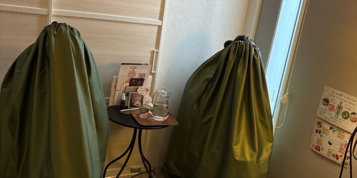 よもぎ蒸し中にマントの中にお顔を入れることで美肌効果もあり、身体だけでなくお肌も調子が良くなるので是非お試しくださいませ。