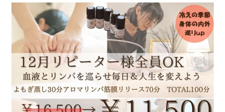 ボディの施術時間を増やしてよもぎ蒸しと組み合わせることも可能です。お疲れ具合、冷え具合によってお選びいただけます。