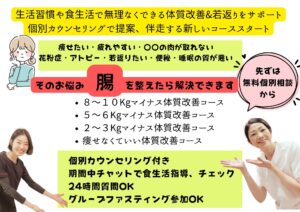 そんな方は先ずは個別ミーテイングさせていただき、お悩みやどうなりたいかなどしっかりヒアリングさせていただきます。その中でどれなら無理なくできるかななど相談に乗らせていただきます。
