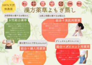 当店にご来店されるお客様の中には「よもぎ蒸しだけだと満足できない」と言われる方が多く、日々同じ姿勢でお仕事されたり家事や育児で中々自分を労わることができない方が月に一度のメンテナンス、デトックス、リセットの目的でご来店される方が多くいらっしゃいます。